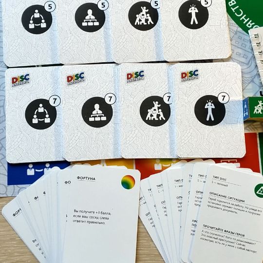 6. Карточки типов DISC, 1 комплект четыре цвета, формат А7, бумага 280 г/м2, полноцветная печать, ламинированные – 32 шт.
